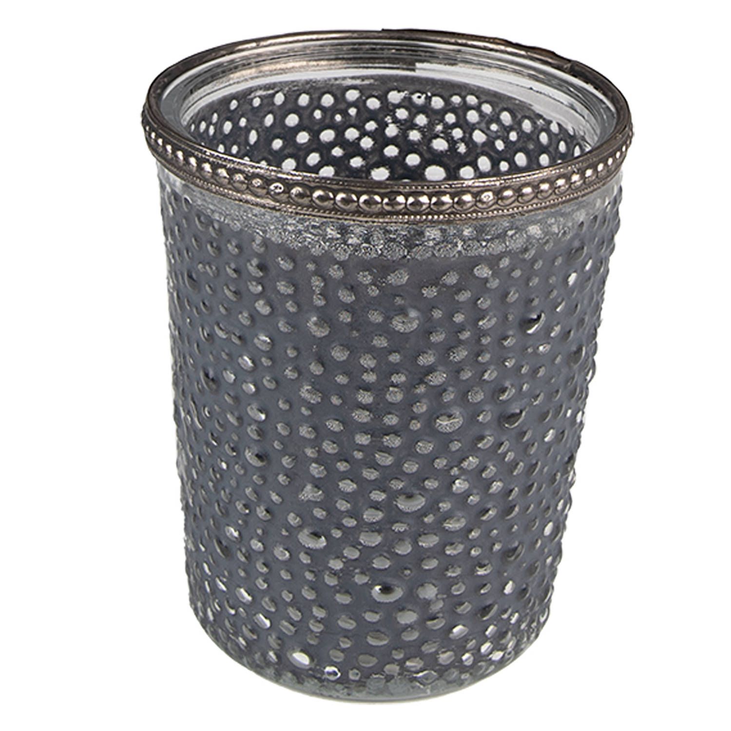 Clayre & Eef Theelichthouder - ø 6x7 cm - Grijs - Glas - Metaal