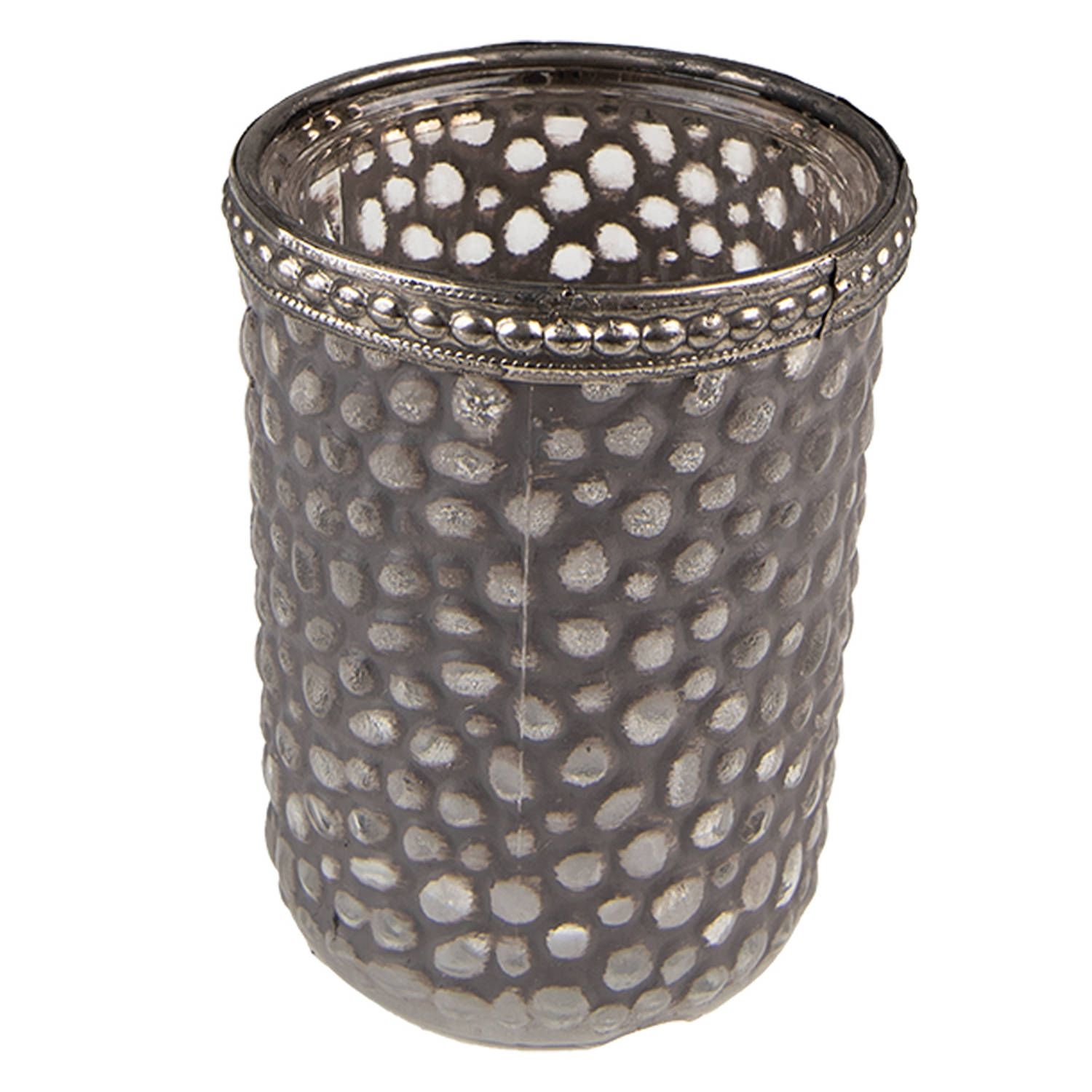 Clayre & Eef Theelichthouder - ø 6x7 cm - Grijs - Glas - Metaal