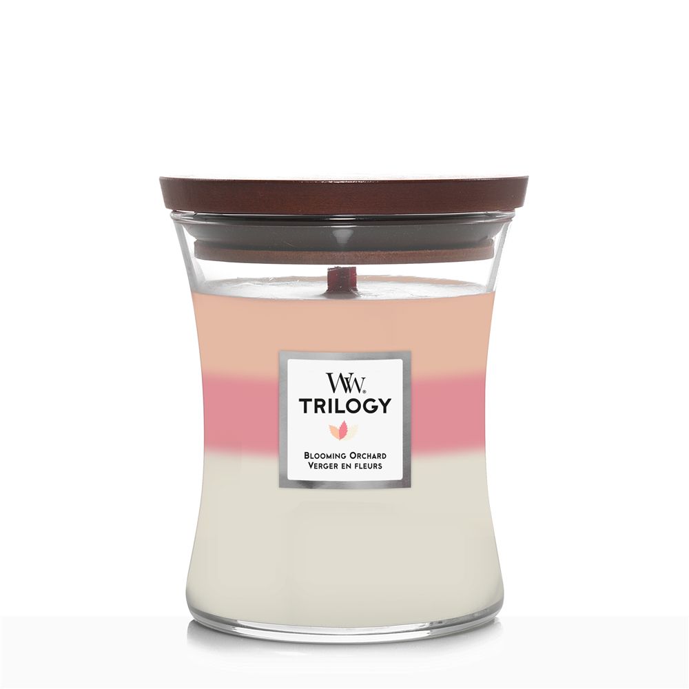 WoodWick Blooming Orchard Trilogy Medium Jar Candle - Round - Orange, Pink, White - Kaarsen