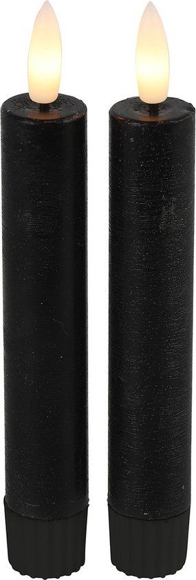 Set van 2 zwarte ledkaarsen 15 cm x 2,2 met afstandsbediening van het merk Countryfield. De afstandsbediening heeft een timer en dimmer, deze is ook te gebruiken op de stompkaarsen van dit merk. De kaarsen werken op 1 AA batterij (excl)