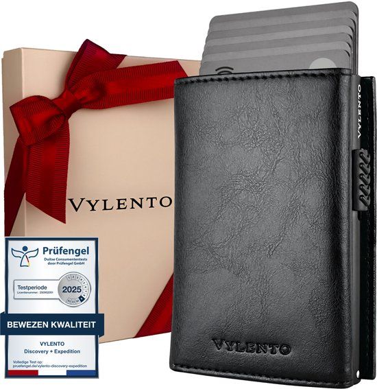 Vylento - Expedition Zwart - Premium Pasjeshouder Uitschuifbaar - RFID Kaarthouder - 12 pasjes - Muntvak - Unisex - Kaartdozen