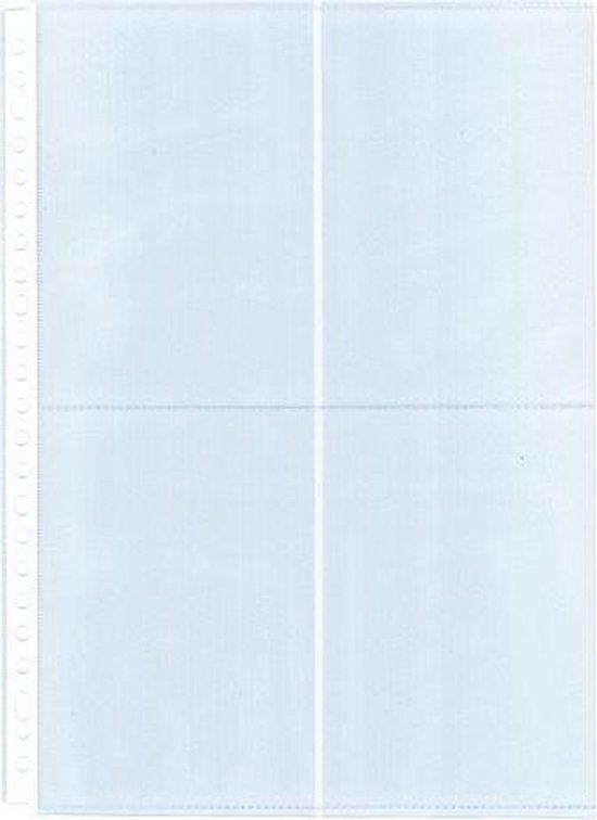 Fotoshowtas A4 vervaardigd van PP 120 mµ, foto/copysafe en antistatisch. Ponsgaten met witte strook versterkt. Leverbaar voor diverse fotoafmetingen. Ponsing: 2/4/23 gaats. Per 10 in krimp. Basic A4. 10x15cm verticaal.