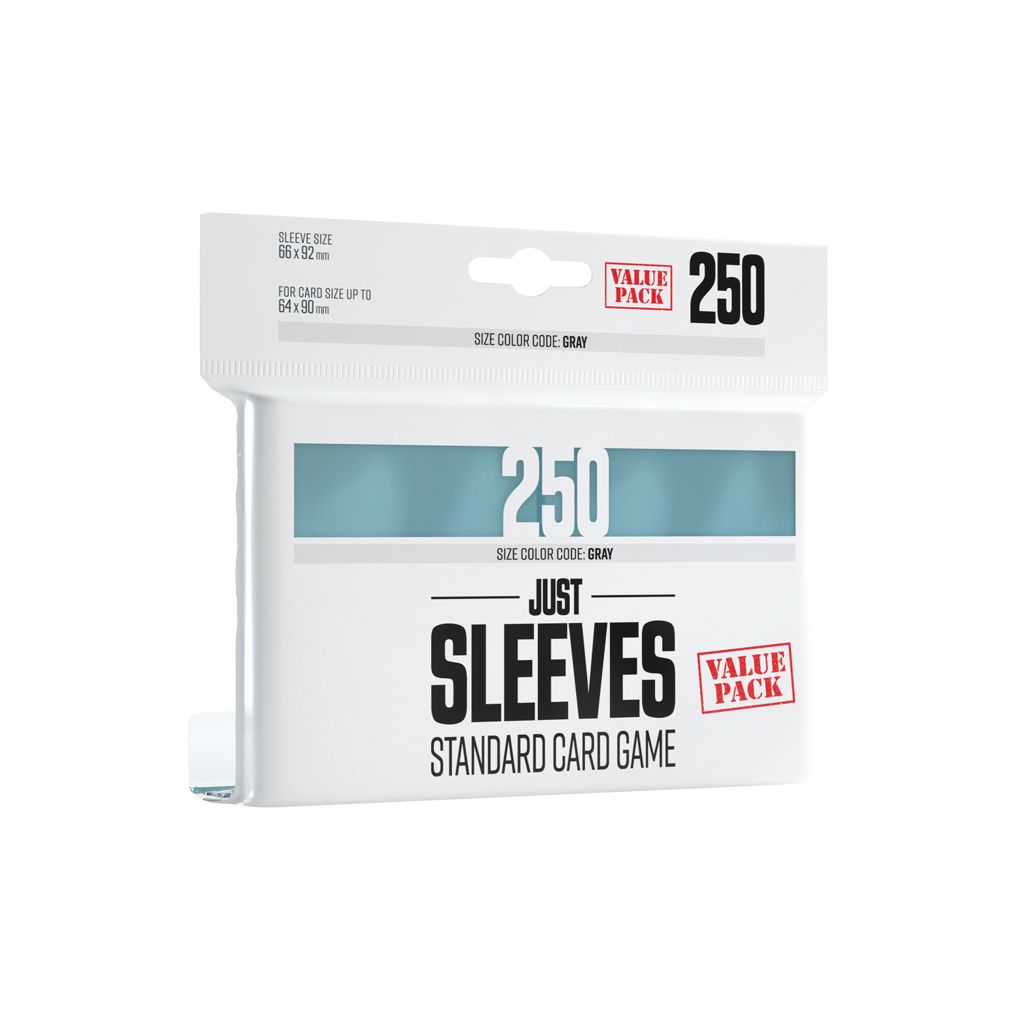 Our answer to entry level sleeve, Just sleeves Standard Card Size are designed to protect board and card games. Each pack contains 250 sleeves measuring 66 x 92 mm (for cards up to 64 x 90 mm)