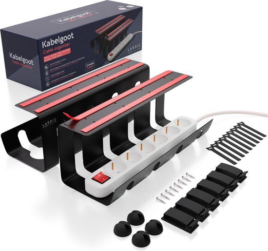 Lardic Metalen Kabelgoot Onder Bureau - 2 x 40 cm - Zwart - Kabelbox - Kabelhouder - Kabelgoten