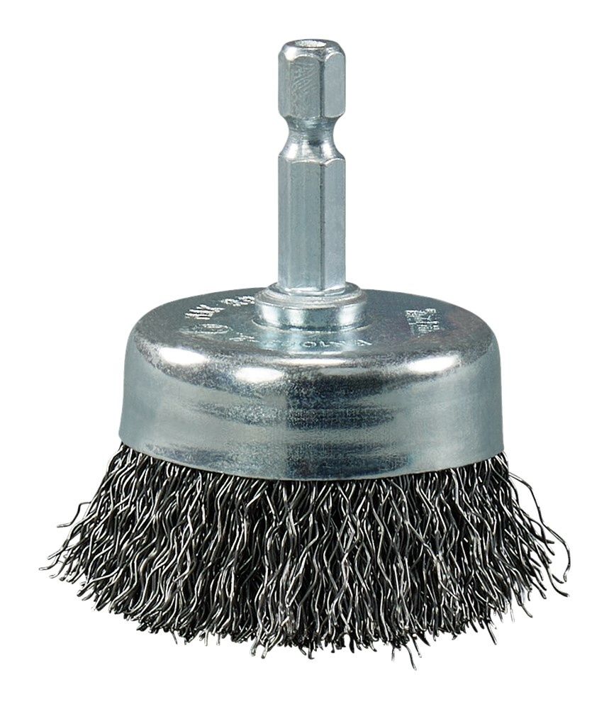 Makita komborstel zeskant 50mm met 1/4" vorm E aansluiting. Deze komborstel heeft geplooid staaldraad en is uitstekend geschikt voor het reinigen en verwijderen van verf, roest, aanslag en schilfers, of voor het ontbramen van ijzer of staal.