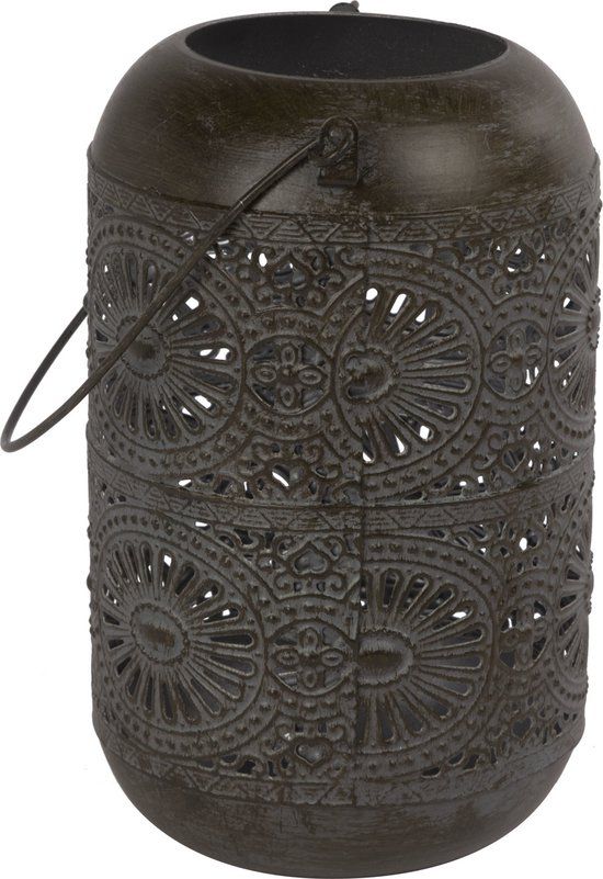 Cosy@Home Metalen lantaarn - bruin - 11 x 18 cm - Cilinder - Landelijk