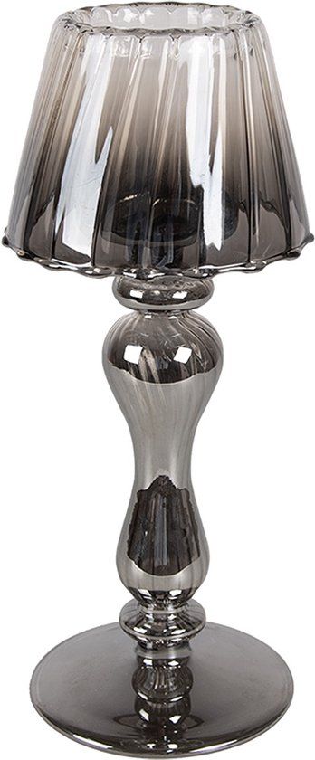 Clayre & Eef Waxinelichthouder Ø 9x22 cm Grijs Glas Theelichthouder - Kandelaars