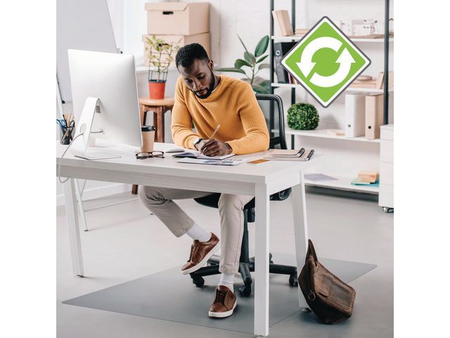 Deze hoogwaardige bureaustoelvloermat van Ecotex® heeft een gladde achterkant dat uw vloer beschermd en een doorzichte afwerking, zodat uw vloer zichtbaar blijft. De Ecotex EvolutionMat vloermat is gemaakt van verbeterd polymeer dat 25% gerecycled materiaal bevat, waardoor de impact op het milieu minder groot is. De mat is sterk en duurzaam en voorkomt dat de zwenkwielen van de stoel uw laminaat, parket, tegels of houten vloer beschadigen.