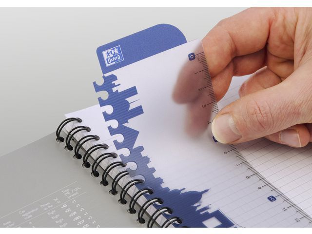 Het Office Essentials spiraalblok van Oxford is een stevig notitieboek met pagina's van een hoogwaardige kwaliteit. Het blok is voorzien van een stevige dubbele spiraal zodat u de pagina's gemakkelijk en soepel om kunt slaan. De Optik Paper pagina's zijn geruit zodat u uw werk netjes uit kunt lijnen. Verder is dit blok voorzien van een uitneembare bladwijzerliniaal die u kunt gebruiken voor het trekken van lijnen, opmeten en het markeren van pagina's.