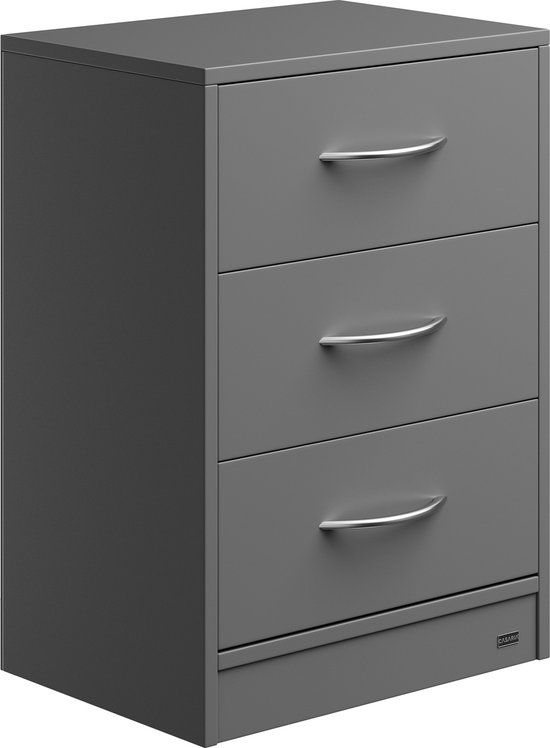 Casaria Nachtkastje Eloise - 3 Laden 54x39x28cm - Antraciet - Kantoorarmoires
