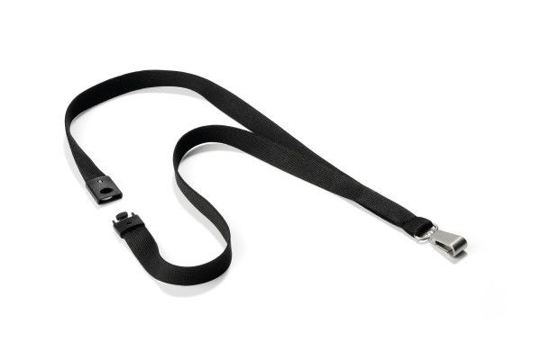 Premium textielkoord met karabijnhaak en veiligheidssluiting. \n Gemaakt van zachte zijdestructuur. De 12 mm brede karabijnhaak is licht van gewicht, gemaakt van metaal en geschikt om te bevestigen aan alle kaarthouders van Durable. Breedte textielkoord: 15 mm, lengte: 440 mm