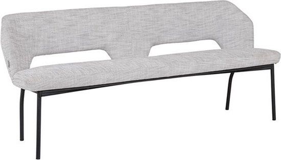Deze stijlvolle eetkamerbank komt uit de MUST Living collectie. De bank is gemaakt van een grijze stof. Het onderstel is gemaakt van zwart gelakt metaal.