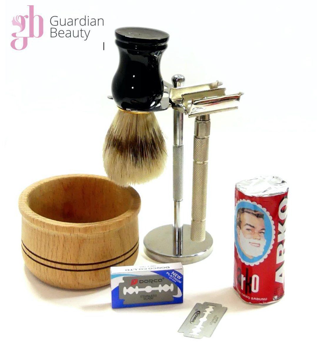 Guardian Beauty Compleet scheerset - Voor mannen 6-in-1 - Baardverzorging scheerset - Scheerkwast - Black - Perfect scheerresultaat - Nat scheren - Kappersscharen
