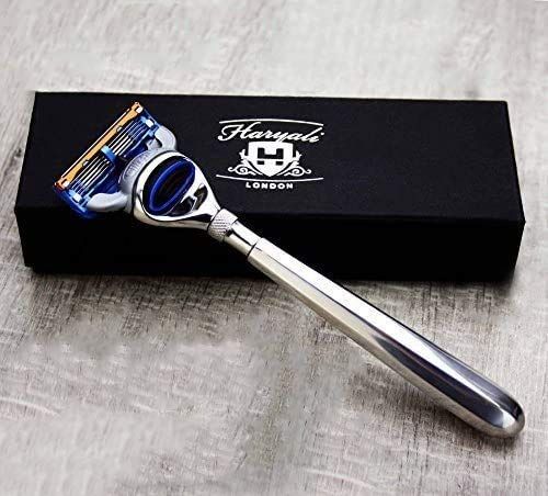 Haryali London 5 Edge cartridge compatibel heren scheermes met 8-zijdige roestvrij stalen handgreep. Lichtgewicht grip voor optimale balans. - Kappersscharen