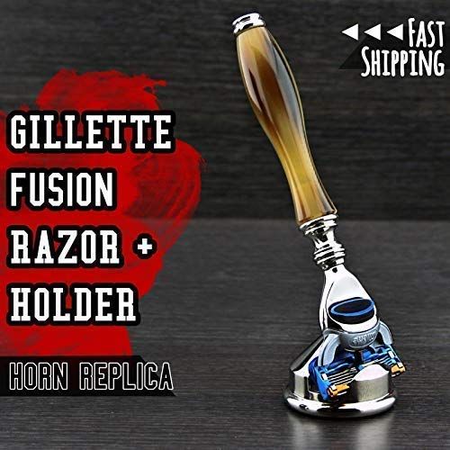 Haryali London Luxe hoorn scheercollectie van || 5 rand compatibel scheermes - luxe hoorn onbreekbaar hars handvat & verchroomd roestvrij staal scheermeshouder - prachtig display