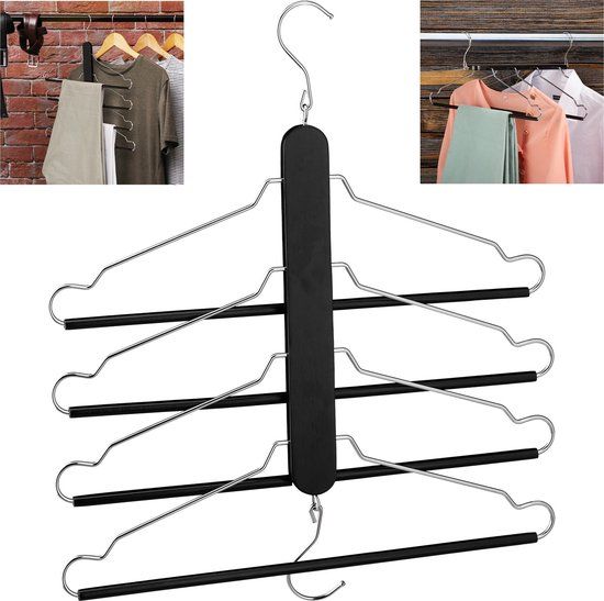 Relaxdays Ruimtebesparende Kledinghangers - Zwart/Zilver - Hout - 1 Stuk