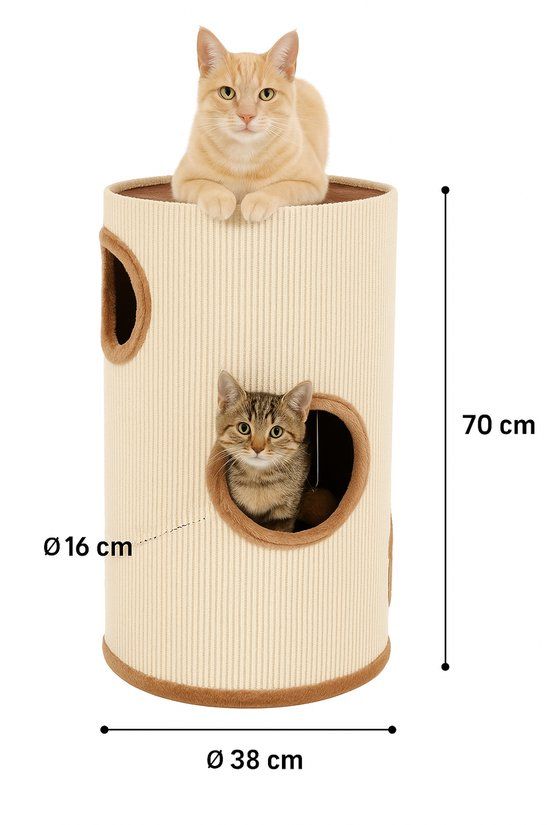 • Afmetingen – 38 x 38 x 70 cm: Compact ontwerp met voldoende hoogte voor actieve katten die graag klimmen.