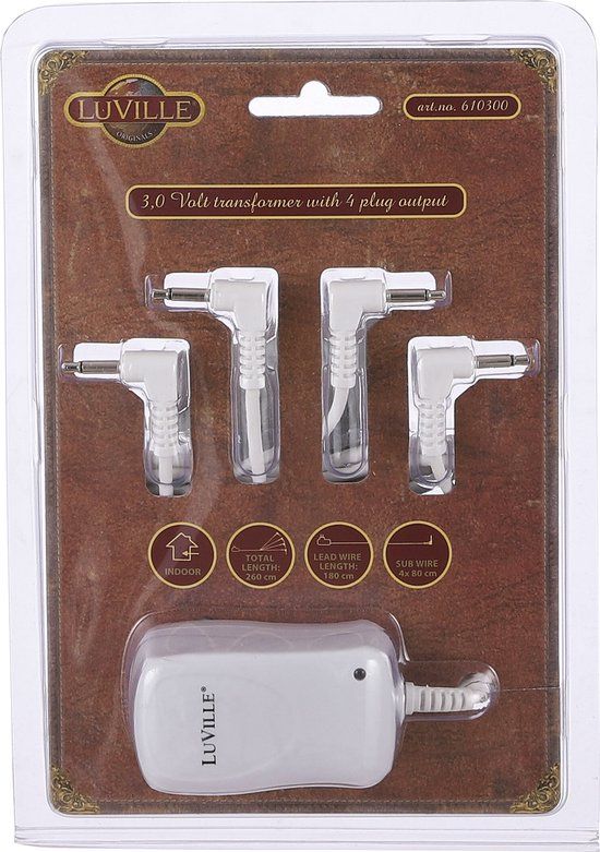 LuVille Kerstdorp Switch Adapter met 4 Plugs - 3 Volt - Metaal - Wit