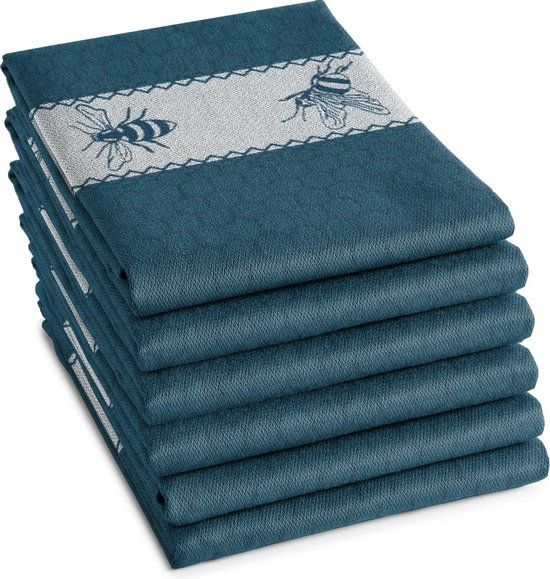 DDDDD Bees Theedoek Set - 6 stuks - Katoen - Honingraatprint - Petrol