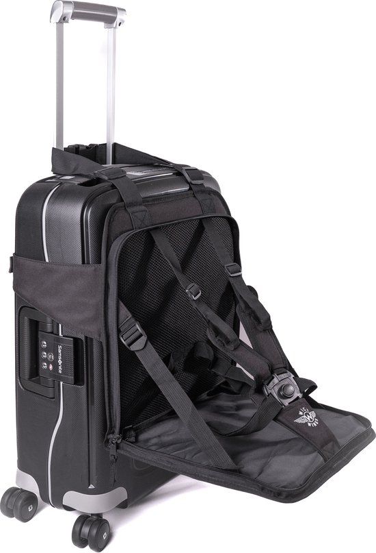 • Bevestig binnen enkele seconden aan je koffer met de verstelbare riemen die zorgen voor een stevige pasvorm