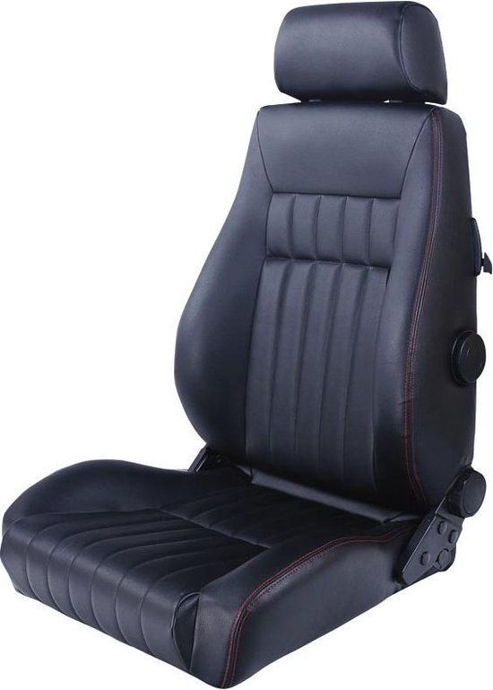AutoStyle Sportstoel 'Retro' - Zwart Kunstleder + Rode Stiksels - Dubbelzijdig Verstelbare Rugleuning - Incl. Sledes