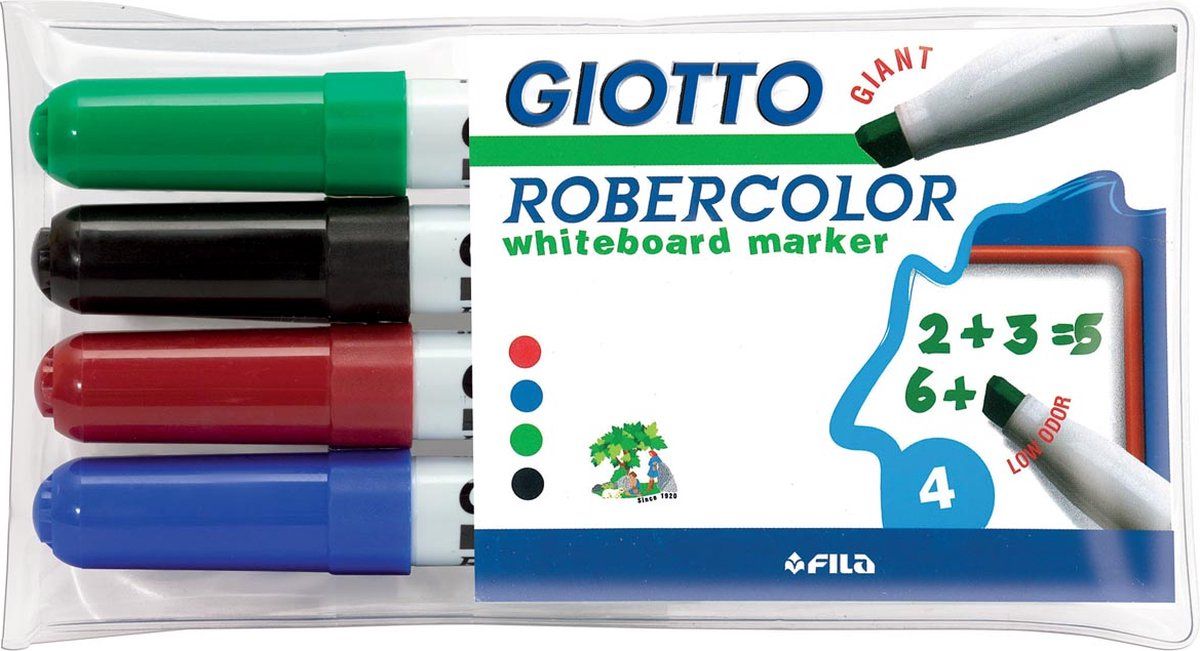 Giottos Robercolor whiteboardmarker maxi, schuine punt, etui met 4 stuks in geassorteerde kleuren 20 stuks