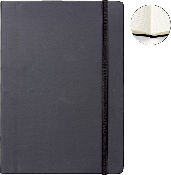 * Notititieboek met harde kaft en sluitbaar met een elastiek.