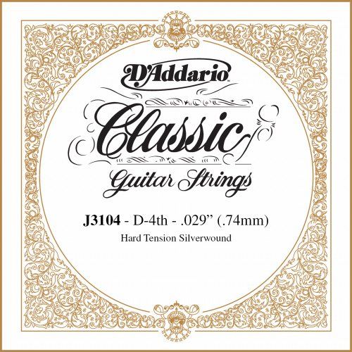 D'Addario J3104 Single String D Concert Guitar Wound .030/J31 Hard Tension Silver