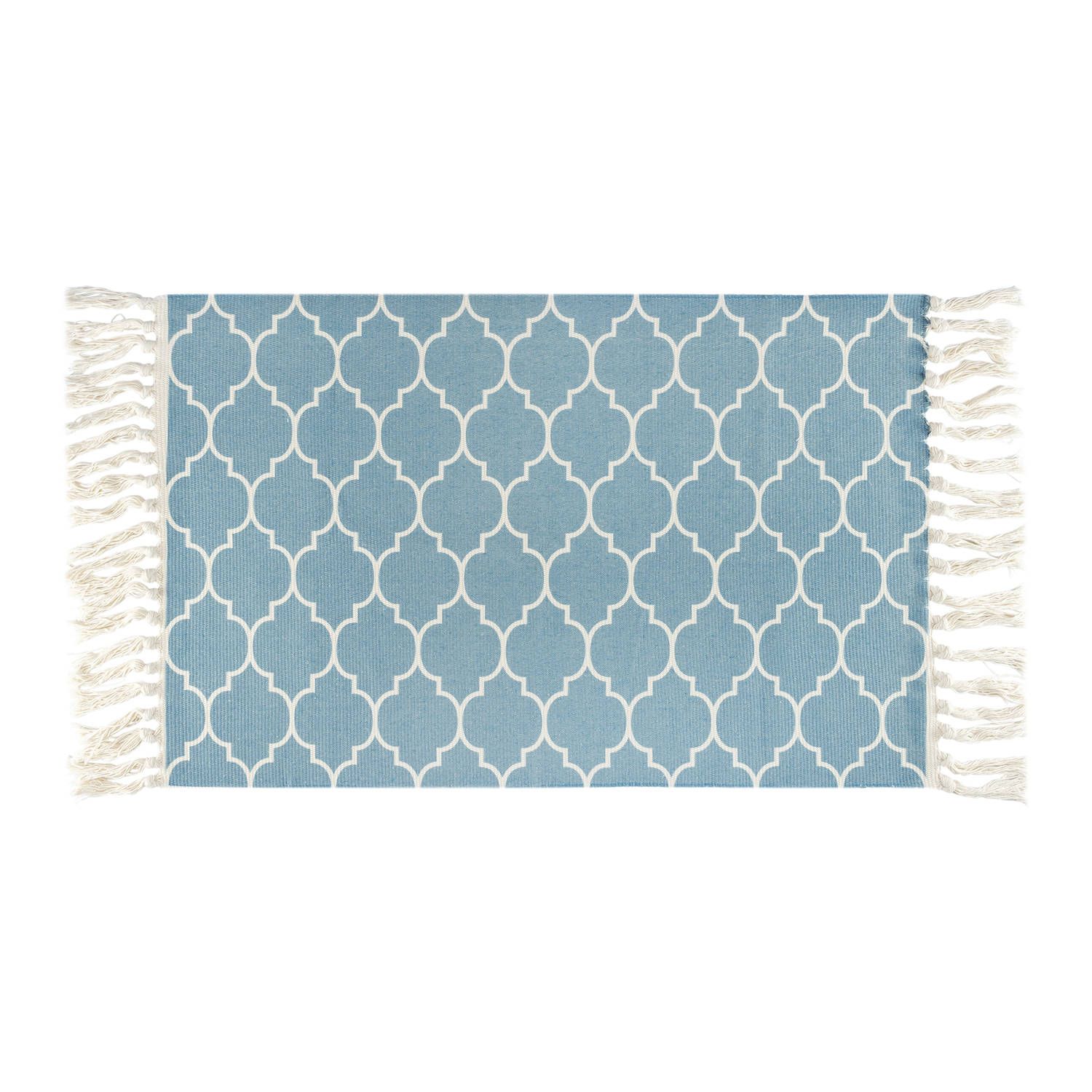 QUVIO Vloerkleed met franjes - Lichtblauw - 90 x 60 cm - Kleden