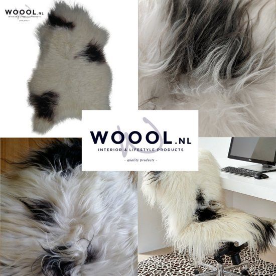 WOOOL IJslandse Schapenvacht XL 115cm - Zwart Wit Gevlekt - Langharig