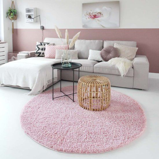 Tapeso Shaggy Vloerkleed Rond 120 cm - Lichtroze - Kleden