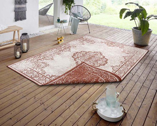 the carpet Calgary - Robuust outdoor tapijt, modern design, weerbestendig en uv-bestendig, beige-ruit, 120 x 120 cm