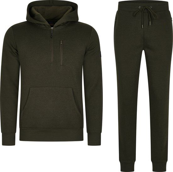 Mario Russo Trainingspak Achilles - Trainingspak heren - Joggingbroek heren - Hoody - Trui - Huispak - Joggingpak - Leger Groen - 3XL