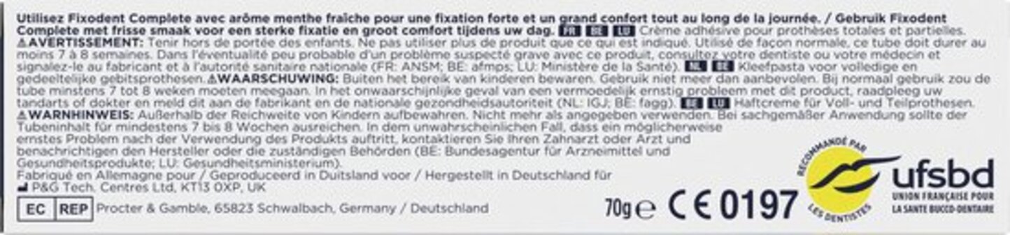 Gebruik Fixodent Complete met een frisse smaak voor een sterke fixatie en de hele dag door geweldig comfort. Deze kleefpasta is geschikt voor volledige en gedeeltelijke kunstgebitten.
