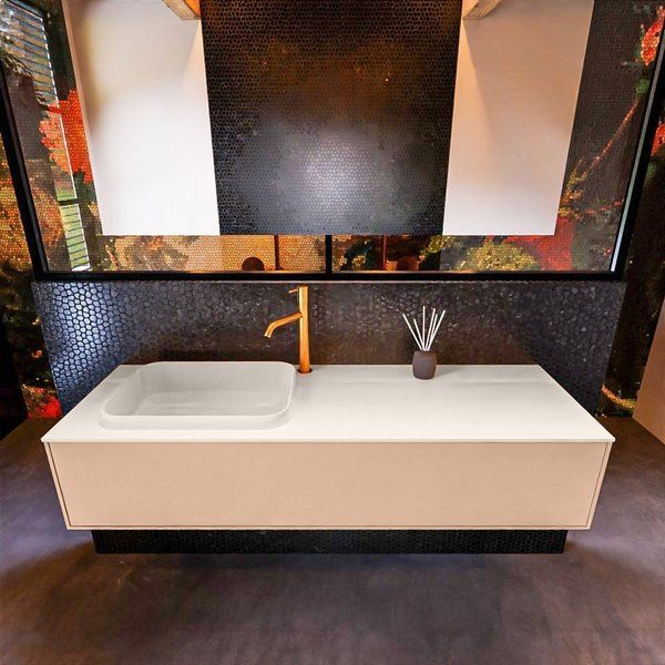 Bekijk productMondiaz ERIN 150cm badmeubelset onderkast Rosee met 1 lade + Wastafel RIDGE links Linen - Kleine buffetten