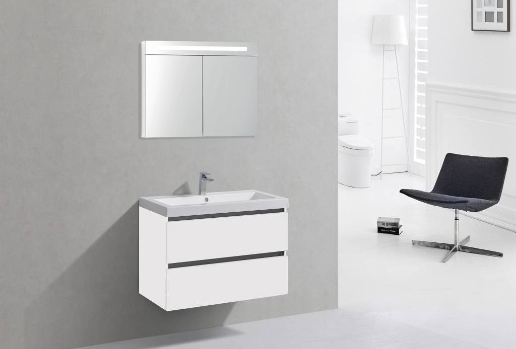 Bekijk productBadkamerplanet Trento Badkamermeubel - 80 cm - Hoogglans Wit met Spiegelkast - Kleine buffetten