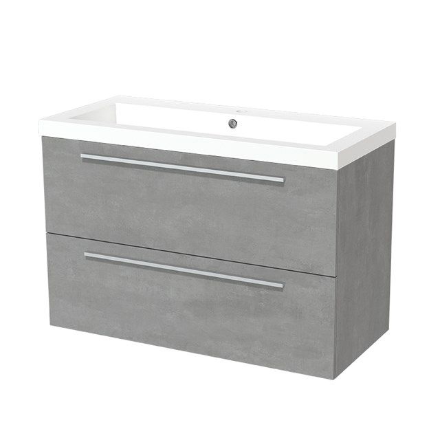 Maxaro Badkamermeubel 100cm Modulo Lichtgrijs Beton 2 lades Vlak Wastafel Mineraalmarmer