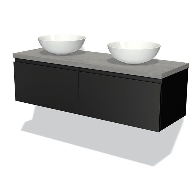 Bekijk productMaxaro Badkamermeubel Modulo Plato 140cm Mat Zwart 2 Lades Greeploos Lichtgrijs Beton - Kleine buffetten