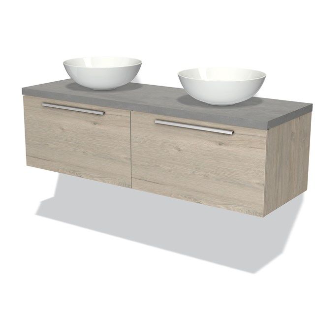 Maxaro Badkamermeubel Modulo Plato 140cm Lichtgrijs Eiken 2 Lades Betonblad - Kleine buffetten