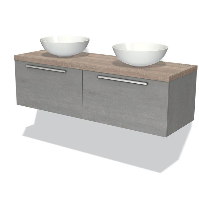 Maxaro Badkamermeubel Modulo Plato 140cm Lichtgrijs Beton 2 Lades Vlak Eiken Blad