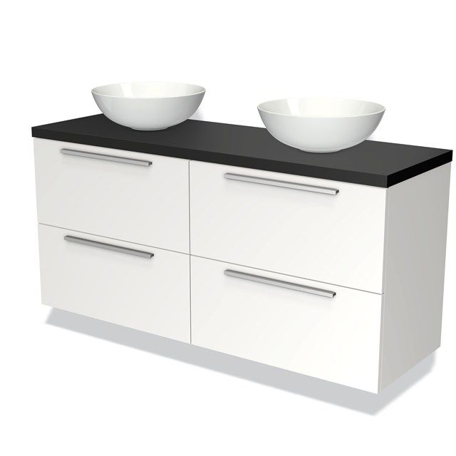 Bekijk productMaxaro Badkamermeubel Modulo Plato 140cm Mat Wit 4 Lades Zwart Blad - Kleine buffetten