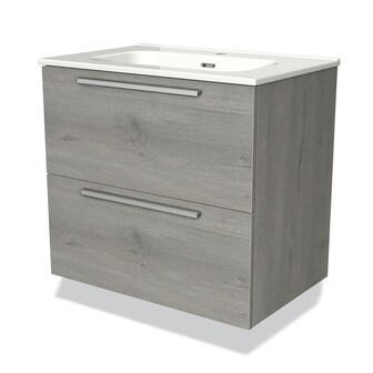 Maxaro Badkamermeubel 70cm Modulo Grijs Eiken 2 Lades Vlak Wastafel Keramiek