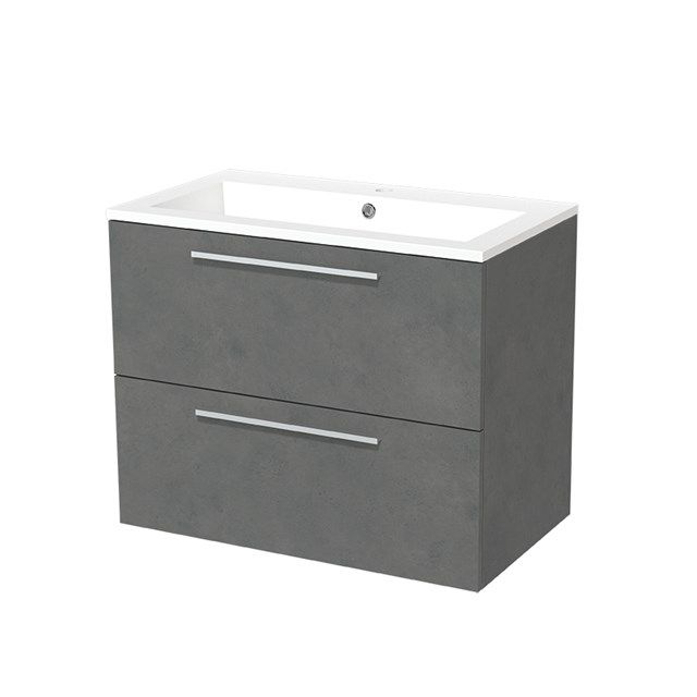 Maxaro Badkamermeubel 80cm Modulo Donkergrijs Beton 2 lades Vlak Wastafel Mineraalmarmer
