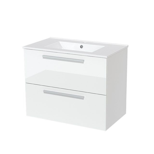 Bekijk productMaxaro Badkamermeubel 80cm Modulo Hoogglans Wit 2 Lades Vlak Wastafel Keramiek - Kleine buffetten