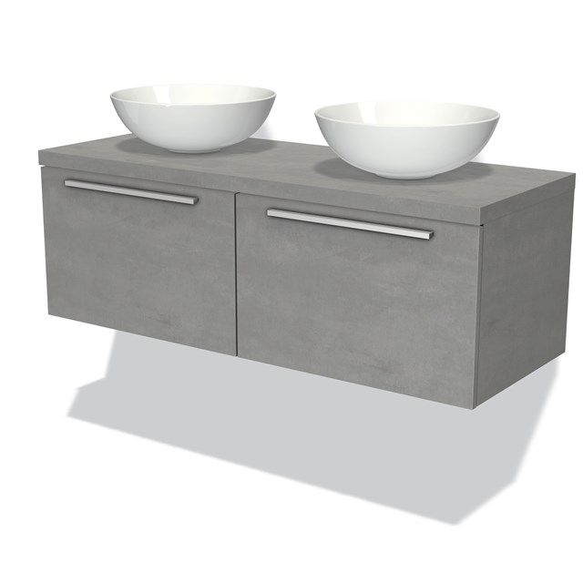 Bekijk productMaxaro Badkamermeubel Modulo Plato 120cm Lichtgrijs beton 2 Lades - Kleine buffetten