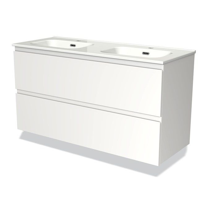 Maxaro Badkamermeubel 120cm Modulo Mat Wit 2 Lades Greeploos Wastafel Keramiek - Kleine buffetten