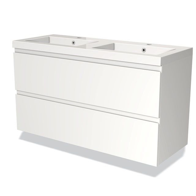 Maxaro Badkamermeubel 120cm Modulo Mat Wit 2 Lades Greeploos Mineraalmarmer - Kleine buffetten