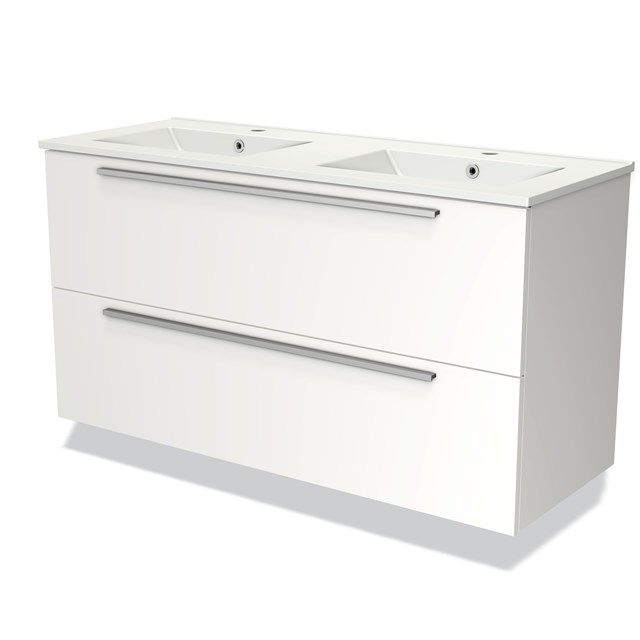 Bekijk productMaxaro Badkamermeubel 120cm Modulo Mat Wit 2 Lades Vlak Wastafel Keramiek - Kleine buffetten