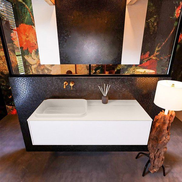 Mondiaz ERIN 120cm badmeubelset onderkast Talc met 1 lade + Wastafel RIDGE links Linen