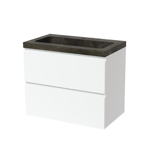 Maxaro Badkamermeubel 80cm Modulo Mat Wit 2 Lades Greeploos Wastafel Natuursteen Blue Stone